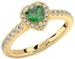 Diamond Emerald Gold Heart Halo Pave Engagement Ring