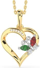 Diamond Emerald & Ruby White Yellow Gold Heart Butterfly Necklace