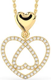 This charming pendant features a polished heart gracefully suspended above an open double-heart frame, lined with sparkling accents. The layered design blends sleek elegance with radiant detail, symbolizing love’s depth and the harmony of two connected souls. Thoughtfully crafted, it’s a beautiful reminder of affection, devotion, and the bond that unites hearts.