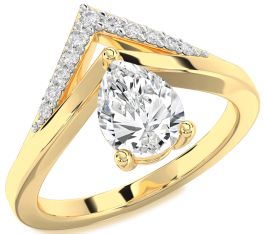 This bold and modern Promise ring showcases a dazzling pear-shaped center diamond cradled in a secure three-prong setting. The distinct V-shaped band in polished yellow gold is elevated with a row of pavé-set diamonds, adding brilliance and architectural flair. A symbol of enduring commitment and contemporary style, this Promise ring is a striking expression of love.