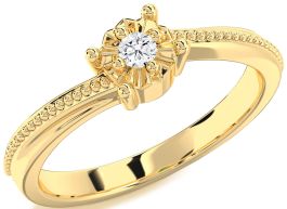 Celebrate your eternal bond with this charming Promise ring, crafted in glowing yellow gold. A single brilliant round-cut diamond radiates from a floral-inspired star setting, evoking delicate elegance. Intricate milgrain detailing along the shank adds vintage allure, blending classic beauty with heartfelt sentiment—an ideal symbol of your enduring love and devotion.