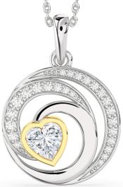 Diamond Gold Silver Circle Heart Necklace