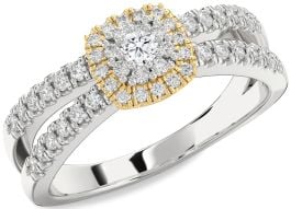 This Promise ring dazzles with timeless elegance, showcasing a radiant round diamond cluster centerpiece framed by two rows of glittering diamonds that extend along a split shank band. Crafted in polished yellow gold, the symmetrical design exudes sophistication and grace. A perfect representation of commitment, this Promise ring is a meaningful token of enduring love and devotion.