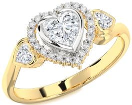 Whimsical and heartfelt, this engagement ring features a brilliant central heart encircled by a halo of sparkling accents, flanked by two vivid hearts in soft pink and blue. Each color represents a unique emotion and chapter in your love story, brought together in perfect harmony. Romantic and radiant, this ring celebrates individuality and the joy of a bond that’s both colorful and complete.