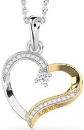 This beautiful heart-shaped pendant gracefully combines timeless elegance with a modern twist. Featuring a sparkling center stone that catches the light with every movement, the design is accented by shimmering pavé stones that outline the flowing heart. The word "LOVE" is subtly engraved along the curve, making it a heartfelt symbol of affection to cherish forever.