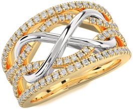 Luxuriously bold, this ring features a wide, layered band woven with flowing ribbons and rows of shimmering brilliance. The elegant crossover design forms a striking infinity motif, symbolizing everlasting connection and strength. Radiant from every angle, this piece exudes modern sophistication while celebrating love that is rich, enduring, and beautifully intertwined.