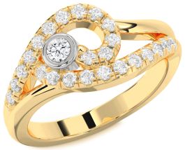 This romantic Promise ring features a graceful teardrop-inspired swirl, accented with a bezel-set round diamond at its center. The sweeping curve is outlined with prong-set diamonds that enhance its fluid form and radiant sparkle. Crafted in polished yellow gold, this Promise ring blends modern elegance with timeless sentiment, making it a perfect token of enduring love.