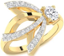 This striking Promise ring showcases a unique floral-inspired design with open, petal-like gold bands that bloom outward from a brilliant round-cut center diamond. The petals are adorned with sparkling pavé-set diamonds, creating a dazzling contrast against the polished yellow gold. A captivating blend of nature and elegance, this Promise ring is a radiant symbol of love.