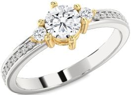 Diamond Gold Silver Round Three Stone Pave Engagement Ring