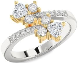 This lively and radiant Promise ring displays a graceful combination of two heart-shaped center stones and a constellation of round accent stones, all set in a gently split gold band. The asymmetrical design adds artistic flair, while the dual hearts represent harmony and meaningful bonds. Sparkling with movement and energy, this piece exudes warmth and thoughtful charm.