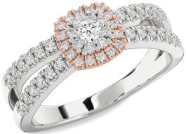 Diamond Platinum & Rose Gold Halo Round Promise Ring