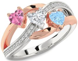 Diamond Platinum & Rose Gold Heart Three Stone Mother's Ring