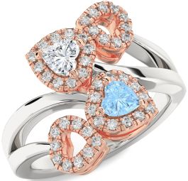 Diamond Platinum & Rose Gold Two Heart Promise Ring