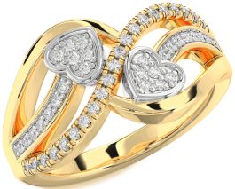 This radiant Promise ring is designed with a duo of beautifully encrusted heart motifs, symbolizing unity and shared affection. Crafted in warm yellow gold, the ring features intertwining bands set with rows of dazzling white stones that shimmer with brilliance. A striking expression of enduring devotion, this Promise ring captures love in its purest form.