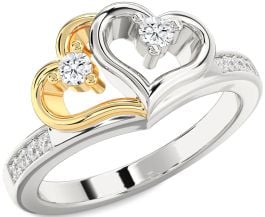 Diamond Platinum & Yellow Gold Heart Two Stone Ring
