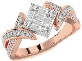This exquisite promise ring features a dazzling arrangement of baguette and round diamonds set in a radiant square centerpiece. The yellow gold band is gracefully accented with crisscrossing diamond-studded shoulders that enhance the ring’s brilliance and depth. Elegant and expressive, this promise ring is a perfect symbol of enduring love and a heartfelt commitment.