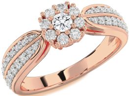 Diamond Rose Gold Silver Halo Round Pave Promise Ring