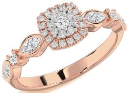 Diamond Rose Gold Silver Halo Round Promise Ring