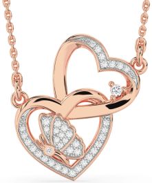 Diamond Rose Gold Silver Heart Butterfly Necklace