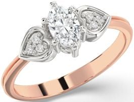 Sweet and elegant, this Engagement Ring features a classic oval centerpiece nestled between two heart-shaped side motifs. Each heart holds a cluster of sparkling accents, adding texture and charm to the design. Balancing timeless romance with delicate detail, this ring captures the essence of a heartfelt promise—a celebration of love that is gentle, radiant, and enduring in every way.