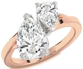 Diamond Rose Gold Silver Pear Two Stone Ring