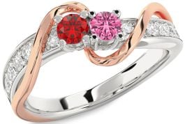 Diamond Rose Gold Silver Round Two Stone Promise Ring