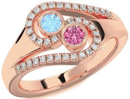 Diamond Rose Gold Silver Round Two Stone Promise Ring