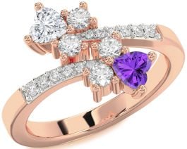 Diamond Rose Gold Silver Two Heart Promise Ring