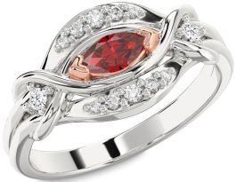 Diamond Ruby White Rose Gold Marquise Promise Ring