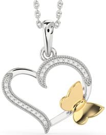 Diamond Silver & 10K gold Heart Butterfly Necklace
