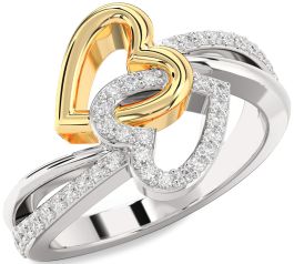 Two hearts unite in this enchanting design, one polished and the other sparkling with radiant accents, interlocking in a symbol of harmony and affection. The flowing band wraps around with elegant symmetry, adding dimension and brilliance to the romantic form. A beautiful expression of lasting love, this ring speaks to bonds that are deeply connected and endlessly cherished.