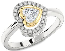 Diamond Silver & 10K gold Heart Solitaire Engagement Ring
