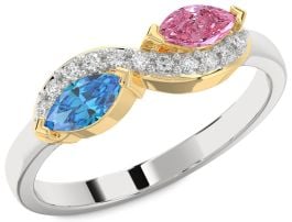 Diamond Silver & 10K gold Infinity Marquise Two Stone Promise Ring