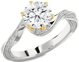 Diamond Silver & 10K gold Round Solitaire Engagement Ring
