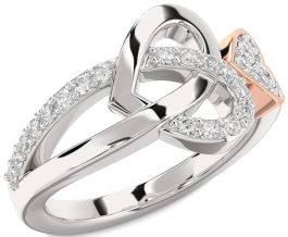 Playful and romantic, this ring features a graceful fusion of two sculpted hearts joined by flowing bands that meet in perfect balance. Shimmering accents trace the contours of each heart and band, illuminating the connection with elegance and light. A modern emblem of affection and unity, this design celebrates love’s power to bring two souls together in a beautifully synchronized bond.
