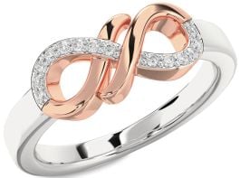 Diamond Silver & 10K Rose Gold Infinity Round Ring