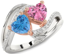 Diamond Silver & 10K Rose Gold Two Heart Promise Ring