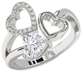 This elegant promise ring features a stunning heart-shaped center stone framed by two graceful open-heart accents—one adorned with sparkling pavé-set stones, the other polished to perfection. Together, they symbolize unity and eternal love. The graceful design and meaningful arrangement make this piece a heartfelt expression of your lasting commitment.