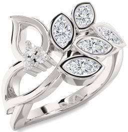 This graceful promise ring is a botanical-inspired masterpiece, crafted in polished yellow gold and adorned with a captivating arrangement of marquise-cut diamonds that resemble delicate leaves. A cluster of round brilliant diamonds nestles beside the leafy motif, adding charm and sparkle. A perfect promise ring to symbolize love blooming with elegance and eternal grace.