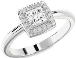 Classic with a bold twist, this engagement ring features a brilliant square center framed by a halo of shimmering accents. The sharp lines of the cushion-shaped frame contrast beautifully with the soft glow of the polished band, creating a look of timeless elegance. This design speaks to a love that is both structured and radiant, capturing the perfect harmony of strength and grace.