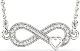 This necklace gracefully weaves together the symbols of love and eternity, creating a design that speaks to devotion without limits. A delicate heart rests within the curve of an infinity loop, symbolizing a promise that endures through time. The sparkling accents and fine detailing enhance its elegance, making this piece a radiant expression of forever love held close to the heart.
