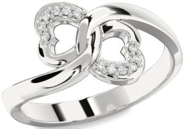 This romantic gold Promise ring features two interlocked open-heart motifs, each delicately outlined with a sparkling array of round-cut white diamonds. The elegant bypass band curves gracefully around the hearts, symbolizing unity and eternal love. Crafted in polished yellow gold, this design blends timeless charm with modern sophistication, making it a perfect gift for a cherished bond.