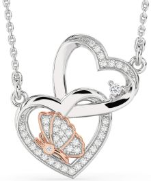 Diamond White Rose Gold Heart Butterfly Necklace