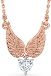 Diamond White Rose Gold Heart Wings Necklace