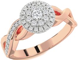 This Promise ring showcases a dazzling halo design, featuring a round center diamond surrounded by two radiant tiers of brilliant accent stones. The intricate cluster is framed with fine milgrain detailing, while the split yellow gold band is accented with pavé-set diamonds, creating a timeless and eye-catching expression of lasting devotion and elegance.