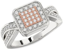 This Promise ring showcases a bold and sophisticated design with a square-shaped centerpiece encrusted with a grid of round brilliant diamonds in a golden frame. Surrounded by a double halo of sparkling white diamonds, the geometric motif exudes modern elegance. Diamond-studded split shoulders add a graceful touch, making this ring a radiant token of lasting love and devotion.