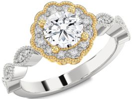 Diamond White Yellow Gold Halo Round Engagement Ring