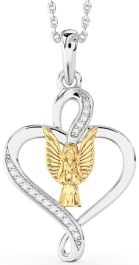 Diamond White Yellow Gold Heart Angel Necklace