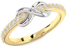 This refined Promise ring showcases an elegant infinity design crafted in polished yellow gold, symbolizing eternal love and commitment. The sleek curves of the band intertwine gracefully, while shimmering round-cut white stones accent each side, adding radiant sparkle. A meaningful Promise ring, it represents unbreakable bonds and everlasting devotion with classic beauty.
