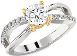 Graceful and radiant, this engagement ring features a brilliant center stone framed by an elegantly split band. One arm of the band is polished and sleek, while the other sparkles with a line of dazzling accents, creating contrast and flow. Symbolizing balance and unity, this ring beautifully captures the intertwining paths of two hearts destined to shine as one.